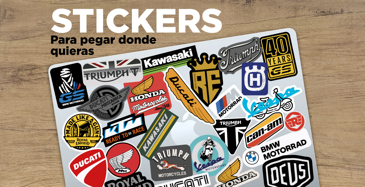 Para pegar en tu moto, casco, computador, etc. Resisten el sol y el agua sin perder el color ni el adhesivo.